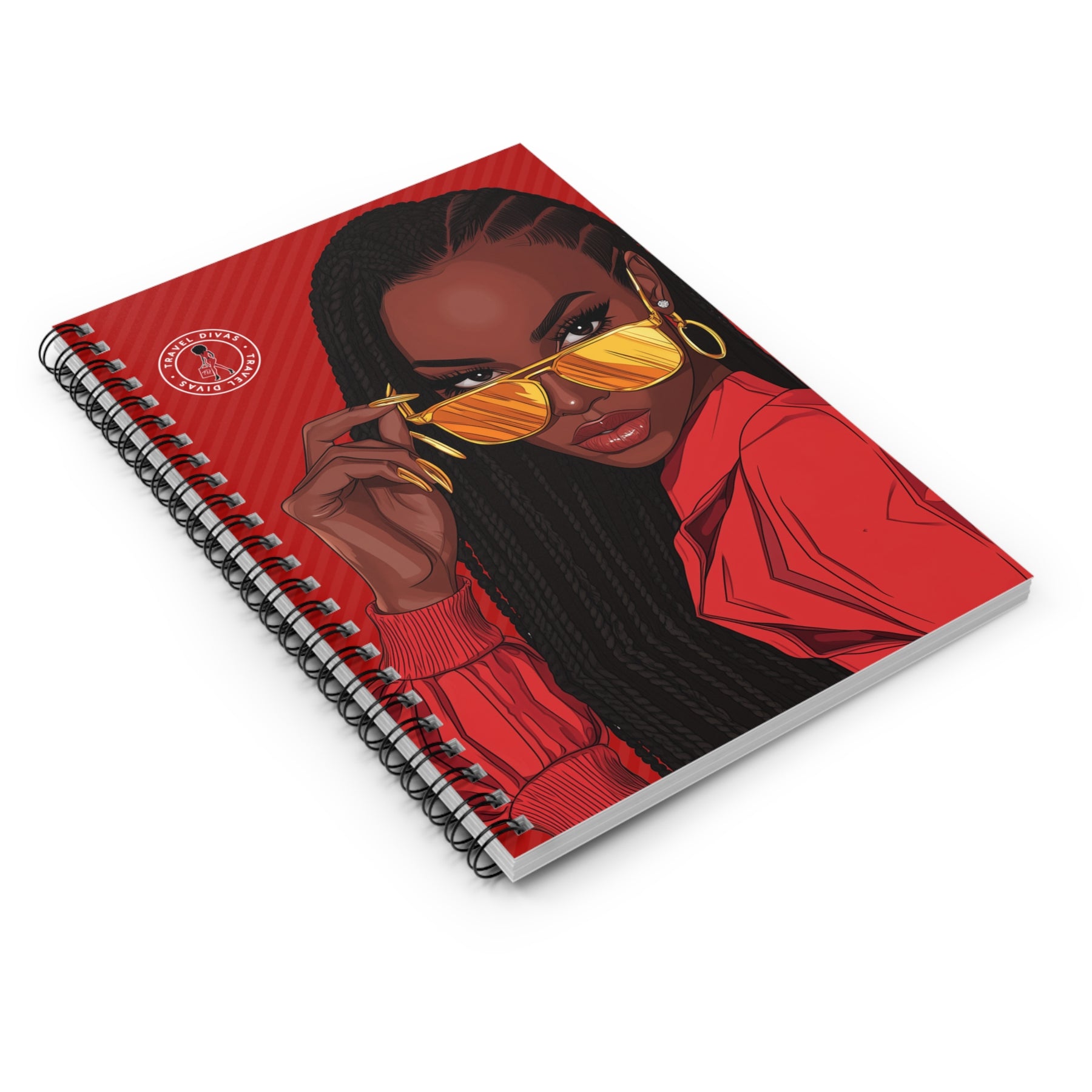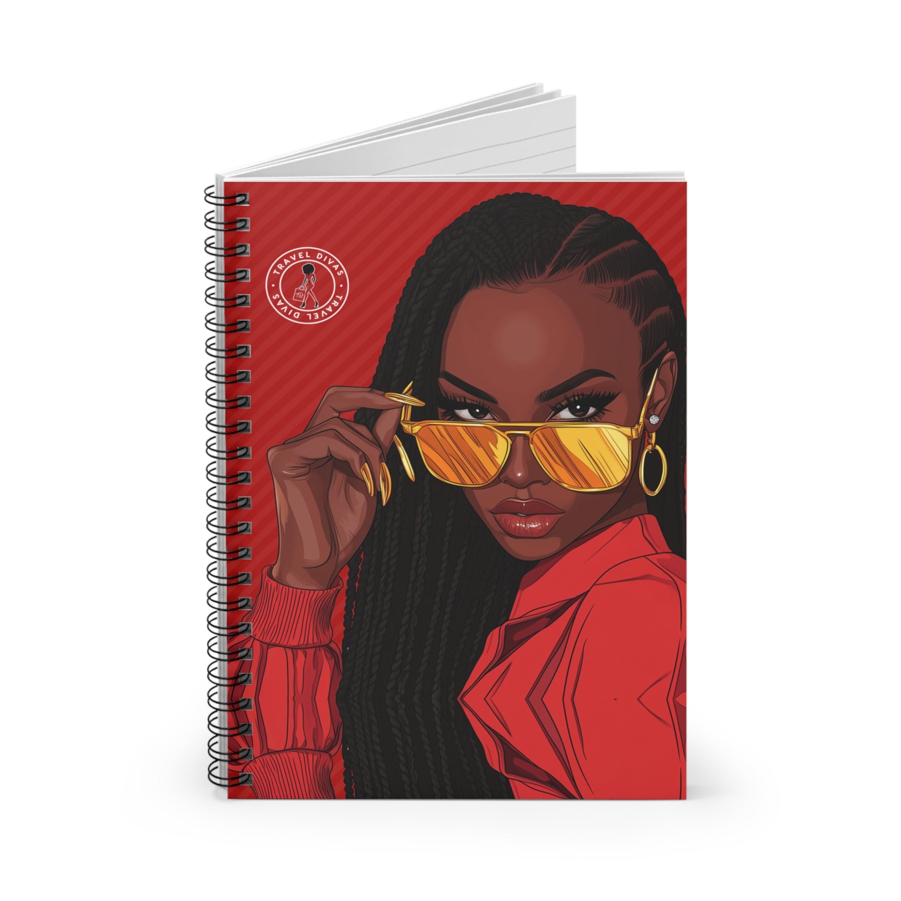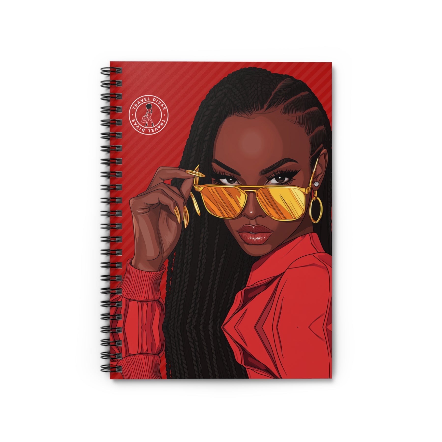 Featuring a striking illustration of a confident Black woman in gold mirrored shades against a bold red backdrop, this spiral notebook is for the woman who plans loudly, dreams unapologetically, and executes flawlessly.