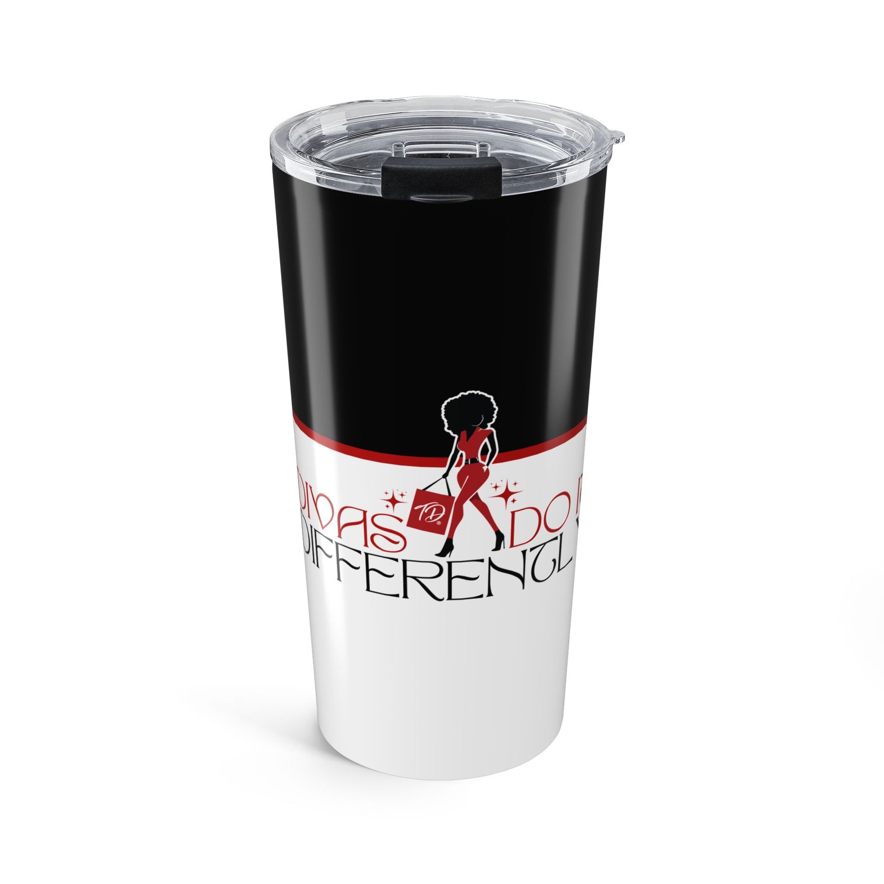 The “Divas Do It Differently” glossy tumbler is for the woman who moves with intention, confidence, and a little bit of flair. The sleek black-and-white design with bold red detailing makes it clear — ordinary is not in your vocabulary.