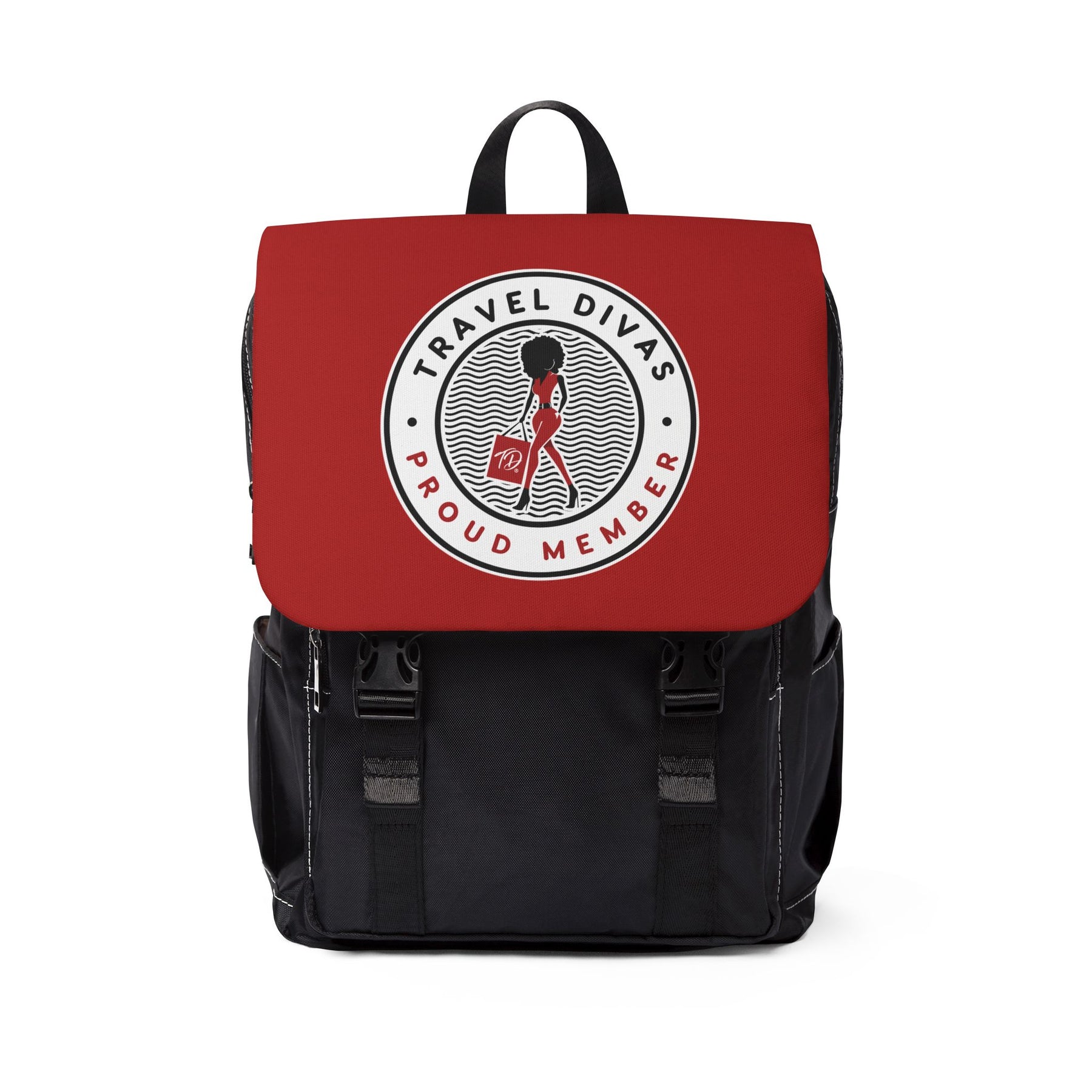 Casual backpack in a classic shape with a front flap design. It is made of durable Oxford canvas. It has two slip interior pockets and one laptop sleeve in the main compartment, a front zipper pocket, and two side pockets. This is a print on demand product. Please allow 7-10 days.